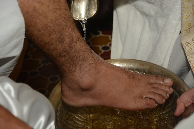 é um rito litúrgico, realizado na Quinta Feira Santa, na missa da Ceia do Senhor. Jesus ao lavar os pés dos discípulos demonstra seu amor por cada um e mostrar a todos que a humildade e o serviço são o centro de sua mensagem. “Eu vim para servir”.