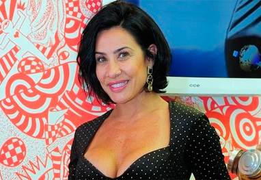 A gata, que já tem 40 anos, exibiu um corpão de dar inveja. Ela usou um shortinho curtinho, blusa branca e sandália de salto alto.